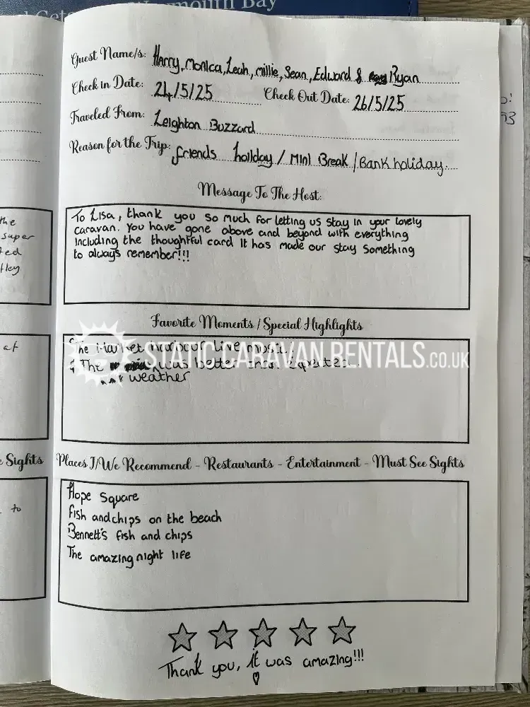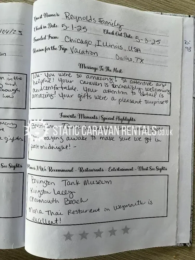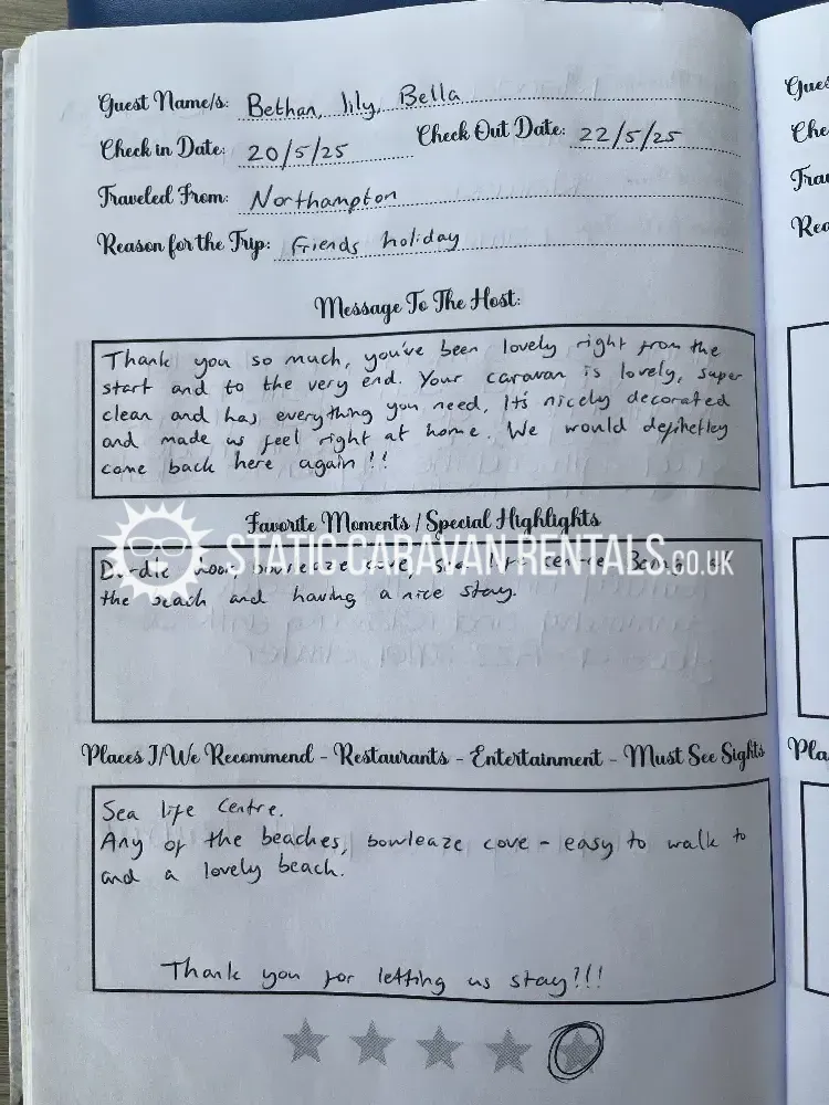 From the location of the caravan on site to the cleanliness and communication from pre booking all the way through to the end of our holiday has been above and beyond.