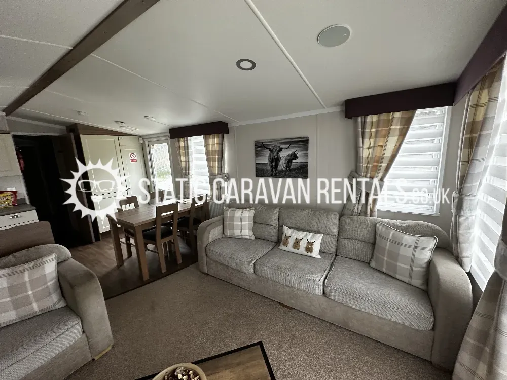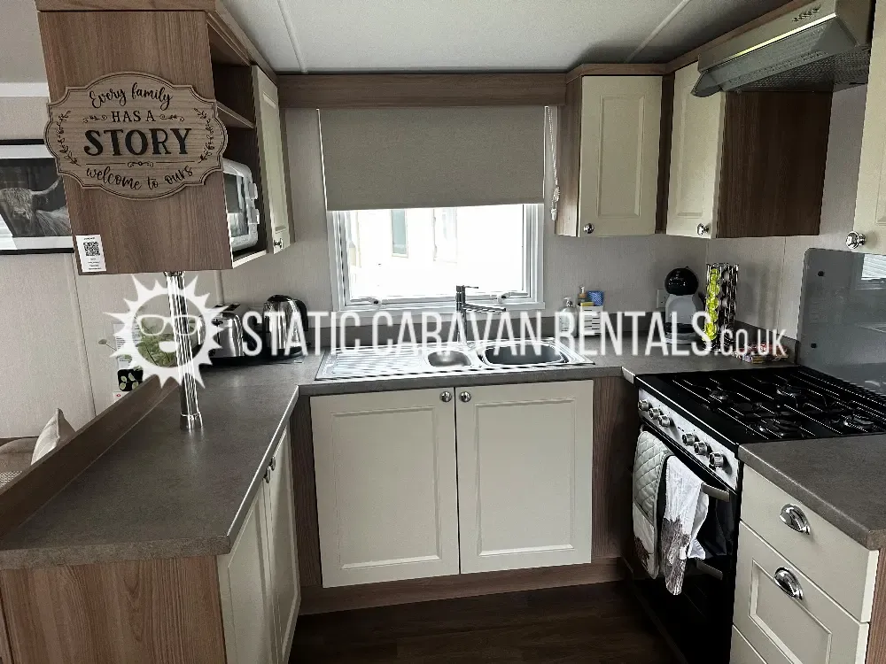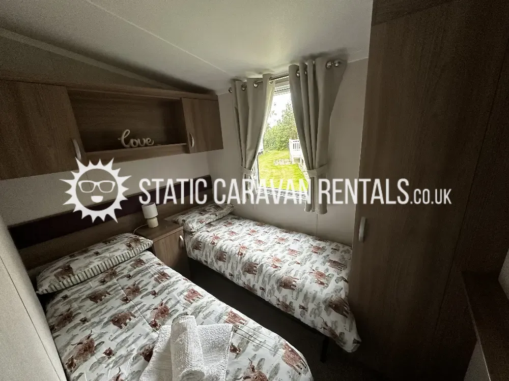 The caravan has a master double room with en-suite and 2x twin bedrooms, sleeping 6 in total, she is plenty big for all combinations of family and friends. Her beautiful and newly refurbished interior offers comfort and luxury with a nice slice of fun!