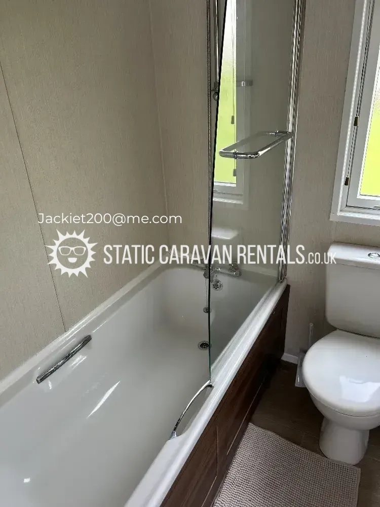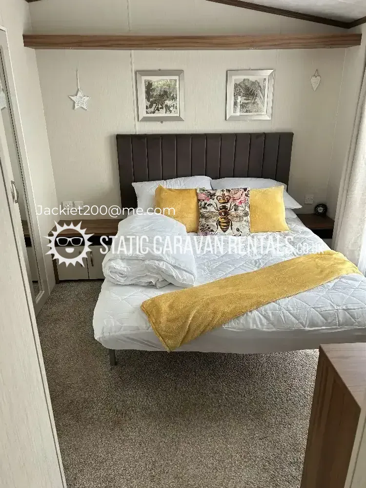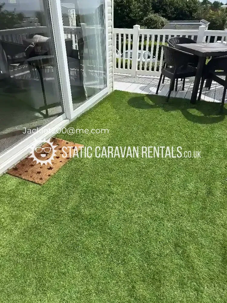Our signature 2 bedroom, sleeping 4, beautiful 40ft x 13ft lodge on Hawthorn Mount, with wraparound decking, and a lovely sea-view. located just behind the complex, benefiting from a very short walk (1-2minutes)