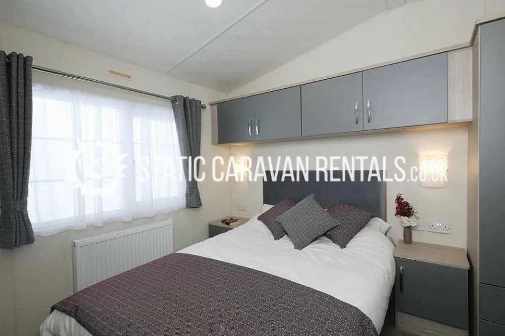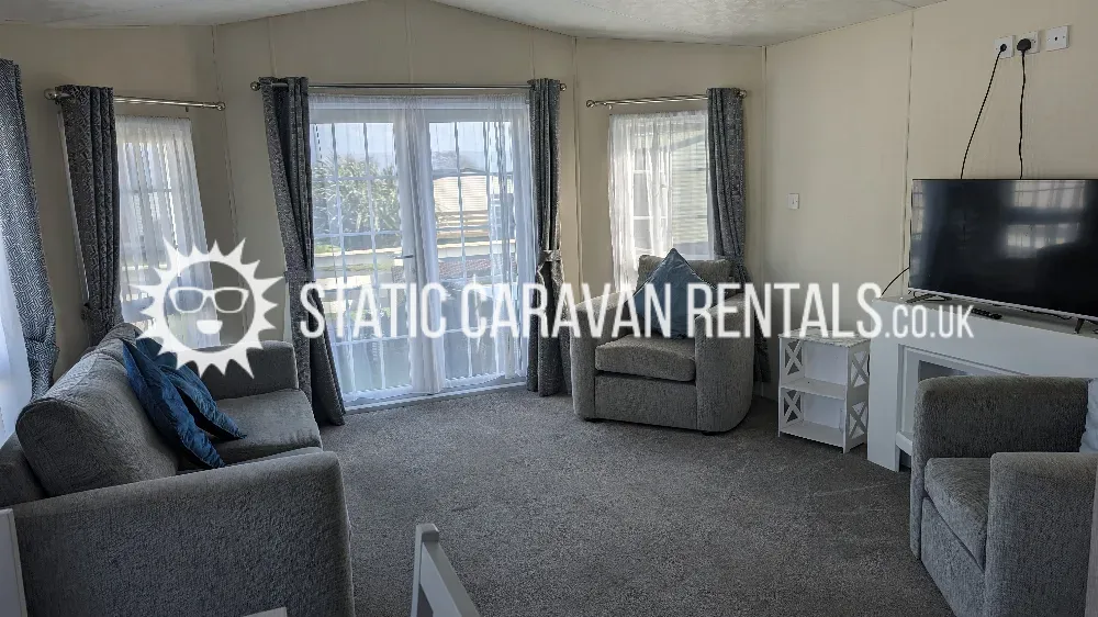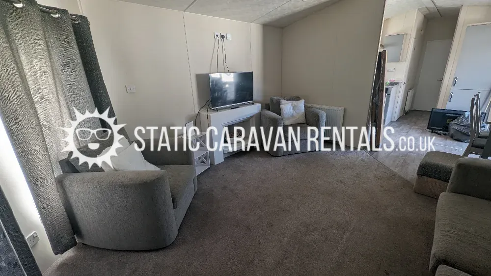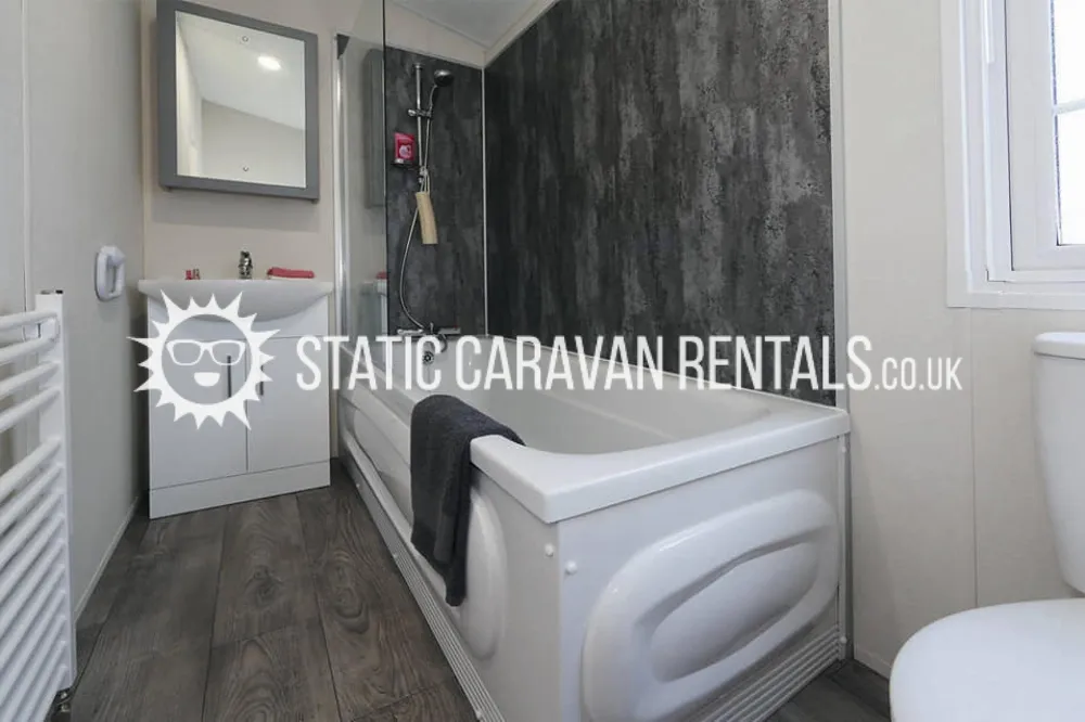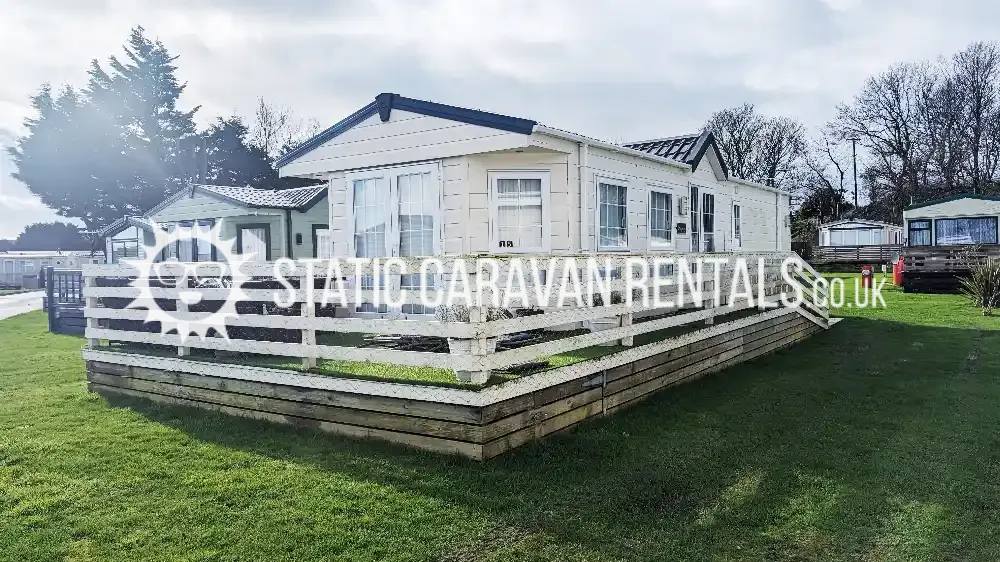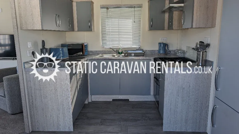 Modern caravan with comfortable essentials, suitable for all ages. Its a popular 2-bedroom holiday home featuring a spacious layout with a large kitchen, full bathroom with a bath/shower, and ample storage.