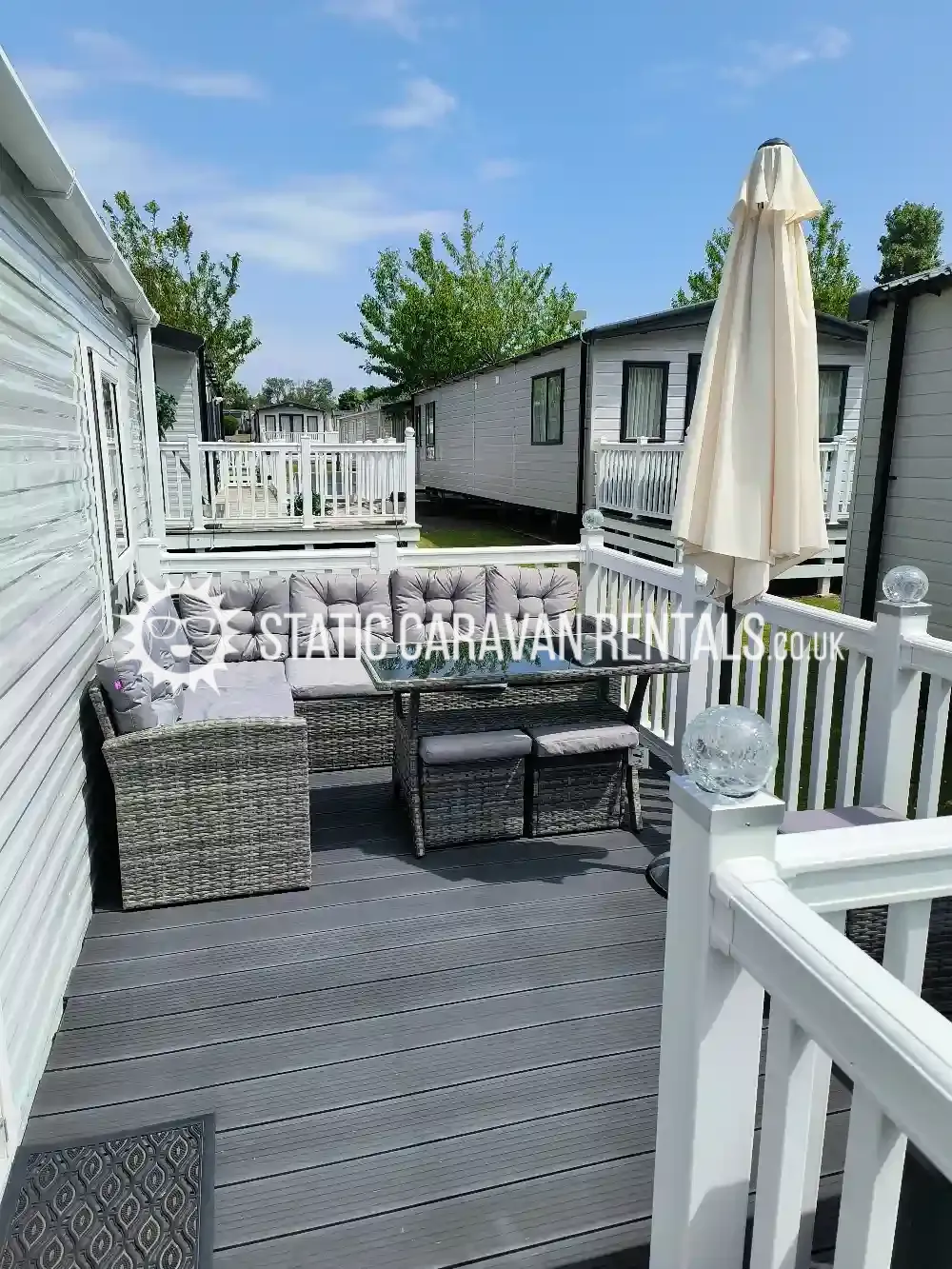 our lovely luxury caravan sits on a lovely sunny spot on bowleaze cove holiday park & the decking is ideal if you just want to sit out & relax.