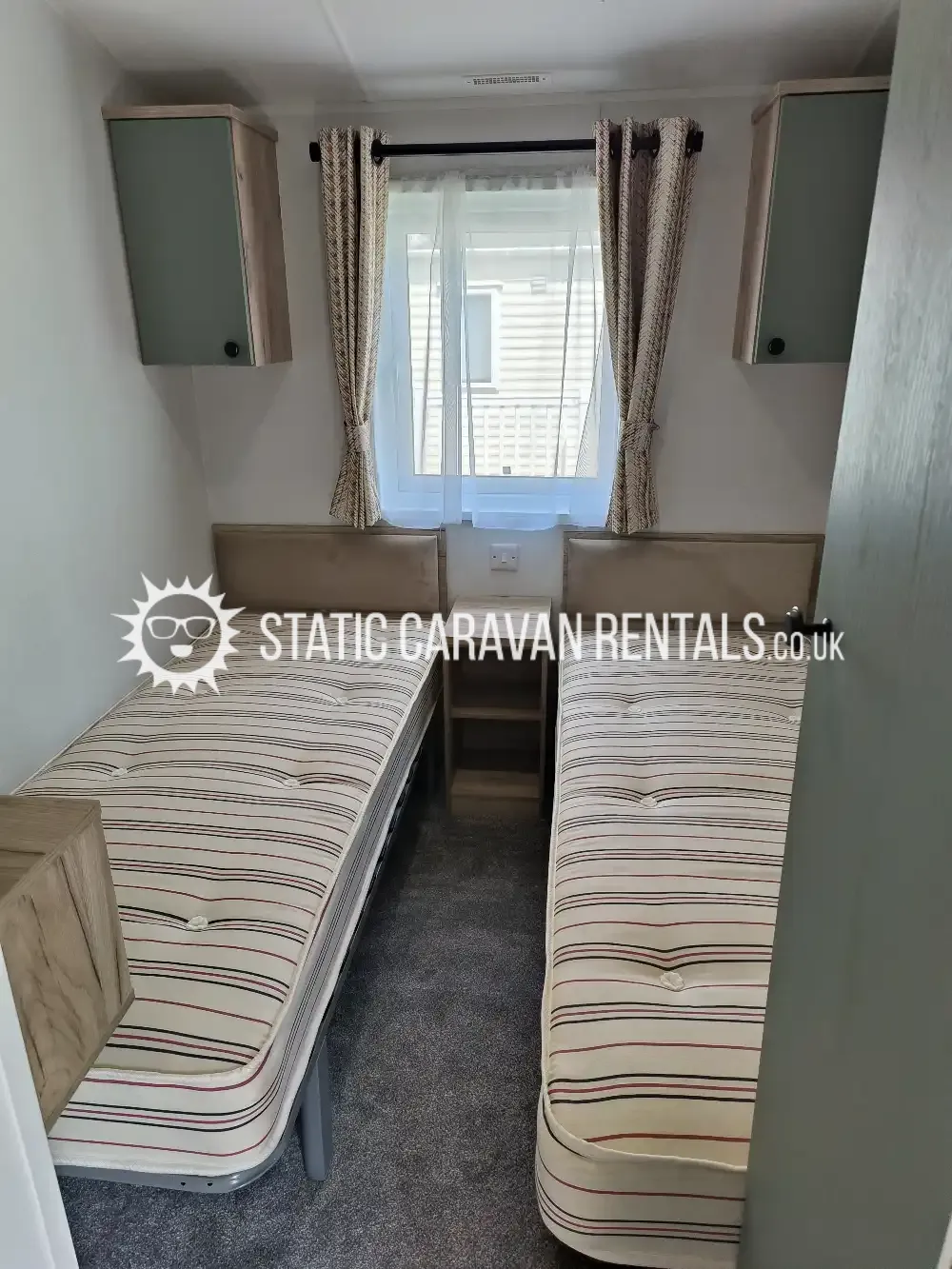 the main bedroom has a king size bed tv, plenty of cupboard & drawer space ,an en-suite with a shower ( the boiler is in the cupboard in the hallway). the second bedroom has 2 large single beds.