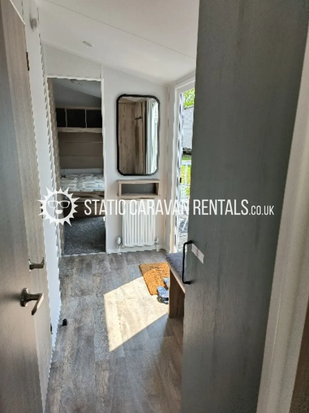 the lounge has a l-shaped settee & hides & foldout bed. along with a tv, coffee table radiators etc.