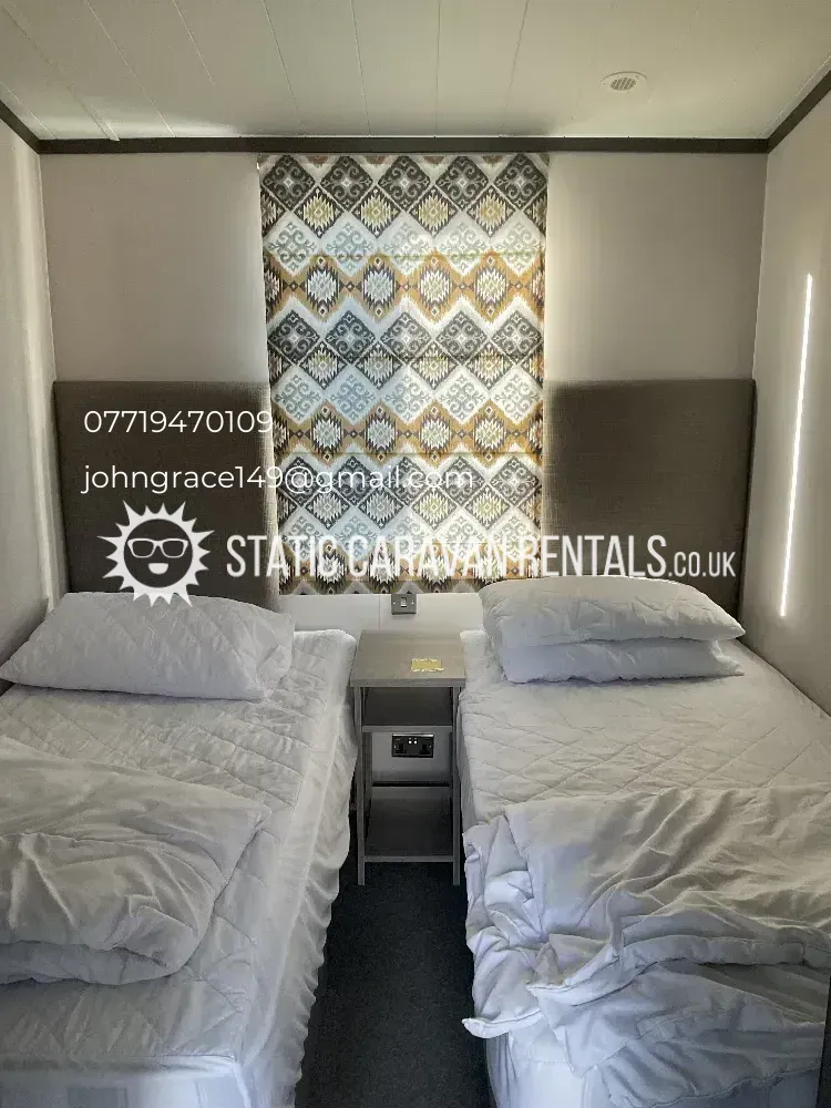 Lakewood Lodge is a 42ft x 13ft Holiday Home situated in an elevated position on the Maples development with panoramic views towards the 4 fishing lakes and beyond the valley. Complete with triple deck 17ft x 8ft with 2 glass top tables and wicker chairs. The main bedroom has a king size bed , en suite and walk in cupboard behind full height mirror sliding doors. Bathroom has toilet , wash hand basin , twin head shower. Twin bed side bedroom has full size 3 ft width beds. Outside chest contains various body boards which are free for guests to use during their stay at Lakewood Lodge. There are numerous reviews on Static Uk website. Many guests return each year. This holiday home is very spacious !What's Allowed
