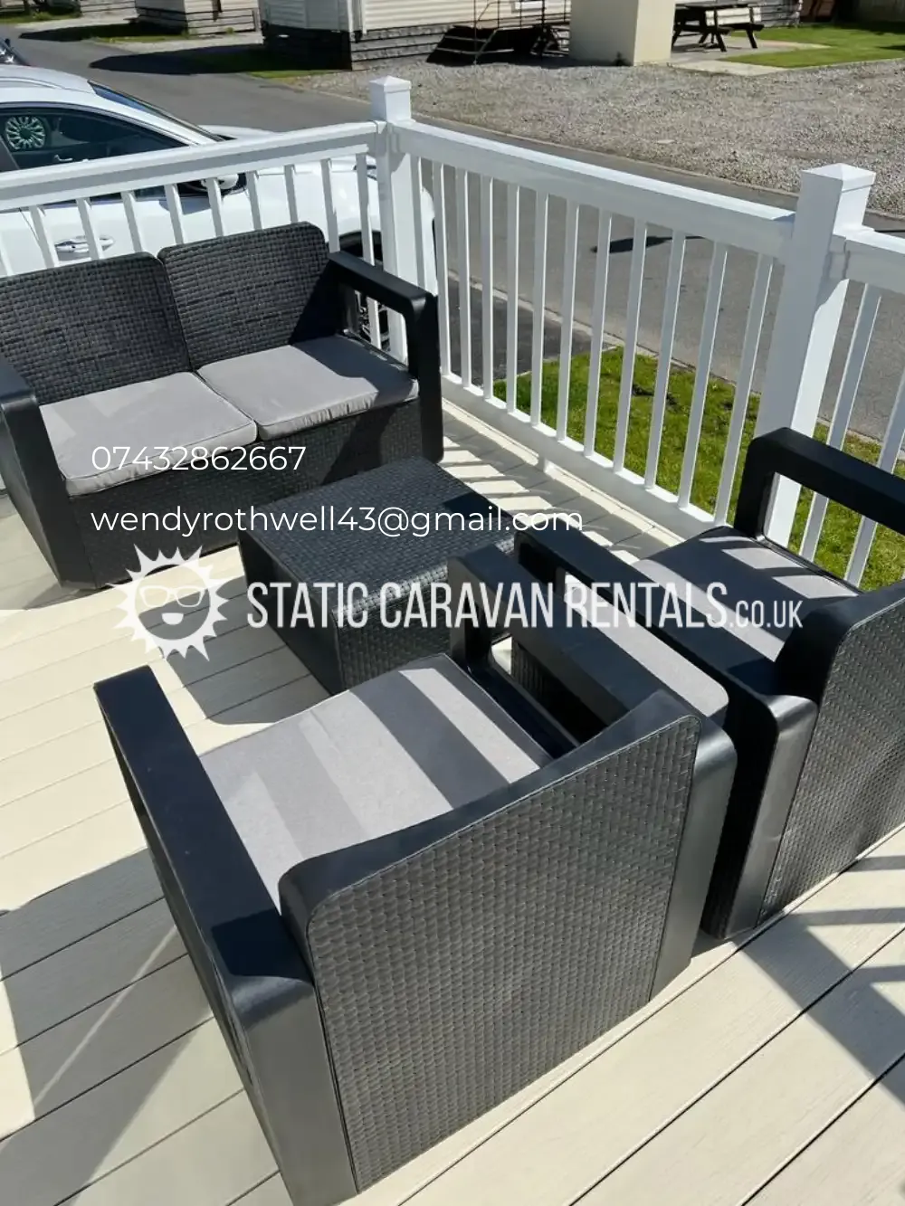 3 bedroom spacious static caravan, south facing with decking, sun tr